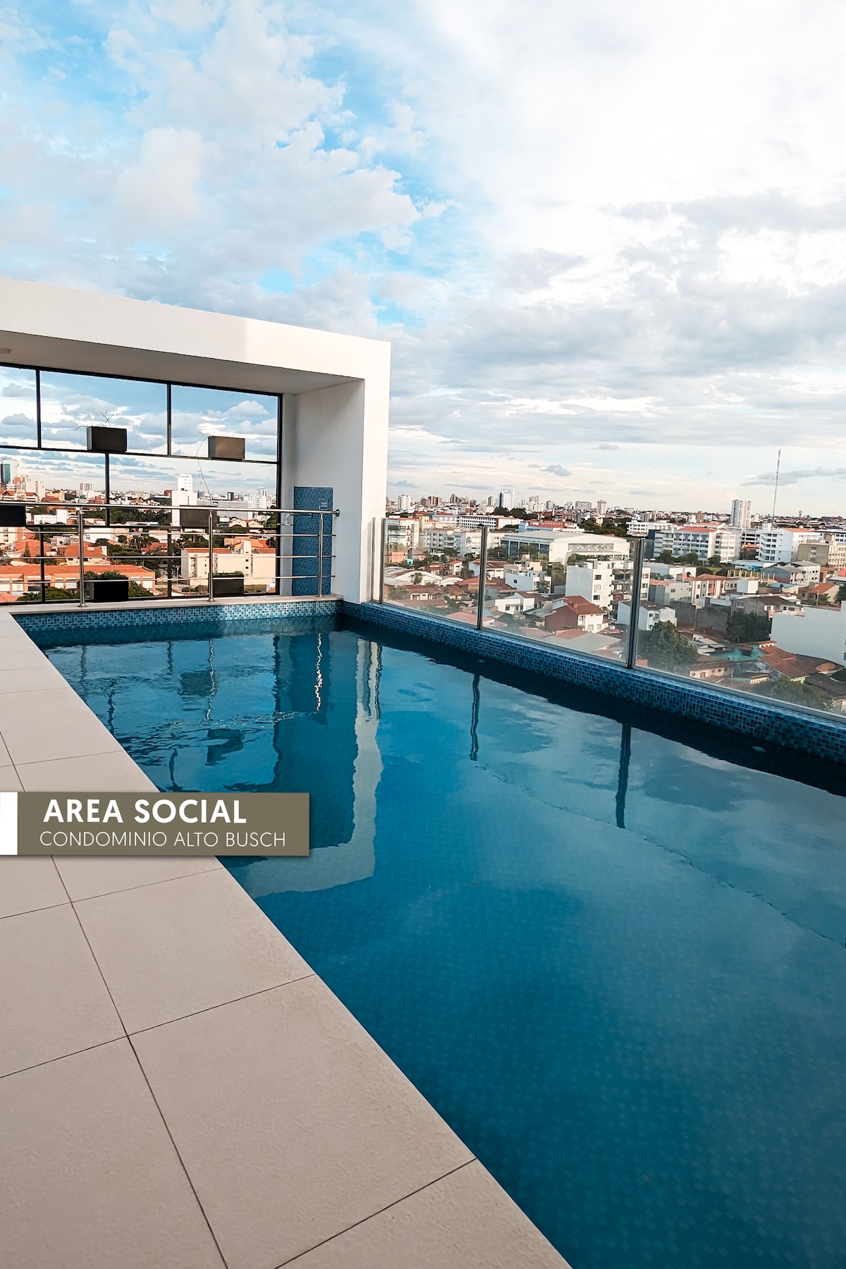 Preparado para estar en la mejor zona de Santa Cruz? Este Studio es moderno con una vista hermosa de la ciudad, además de tener excelentes zonas de diversión como piscina, mesa de billar e incluso su propio Beer Garden. Si lo que buscas es trabajar cuentas con una zona co-work y sala de reuniones. Si te gustaría conocer el vecindario, hay comercio y varias opciones gastronómicas en los alrededores. Si tienes hijos o tu amigo peludo, cruzando la calle cuentas con un pequeño parque.