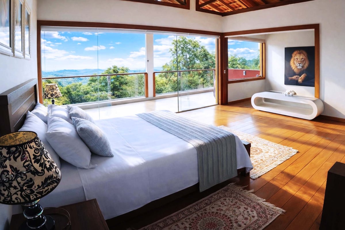 Granja con vista panorámica cinematográfica. Ha sido completamente renovada y está completa, con Wi-Fi y todos los canales desbloqueados, así como una barbacoa, piscina y ventiladores en todas las habitaciones. Balcón muy amplio con césped impecable en el terreno de la propiedad. Perfecto para familias con niños que quieren relajarse frente a una hermosa vista panorámica. ¡Tenemos cuidadores en la granja que realizan el mantenimiento del césped y la piscina a diario para que todo esté siempre maravilloso!