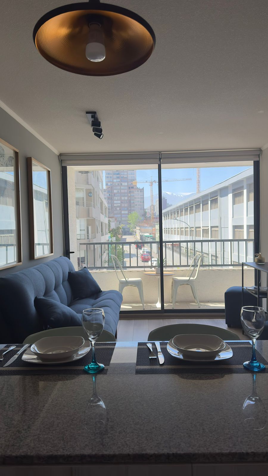 Moderno y acogedor departamento con aire acondicionado en el corazón de Santiago. A pasos del metro y del Centro Histórico, rodeado de museos, mercados y restaurantes. Cama king, cocina equipada, balcón y wifi rápido, ideal para viajes o estadías largas. Edificio seguro con conserje 24/7. Atención personalizada, check-in flexible y recomendaciones locales para que disfrutes la ciudad como un residente, con comodidad y tranquilidad.