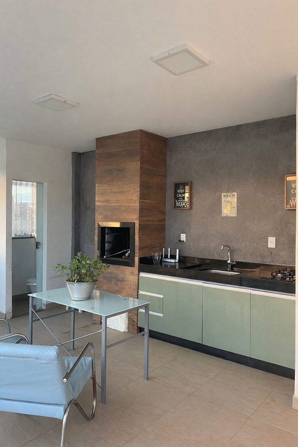Loft com sala ,cozinha ,banheiro independentes + ar-condicionado ,refrigerador,cômoda cama Queen , cozinha gourmet externa , bancada ,cooktop Airfryer ,microondas… ambiente com 1 sofá , poltrona de linho,mesa para notebook … oferecemos serviço de lavanderia . Fornecemos toalhas grandes, lençóis, edredons , cobertor reserva , sabonetes ,shampoo ,limpeza e manutenção para conforto dos nossos hóspedes… temos garagem para um carro !