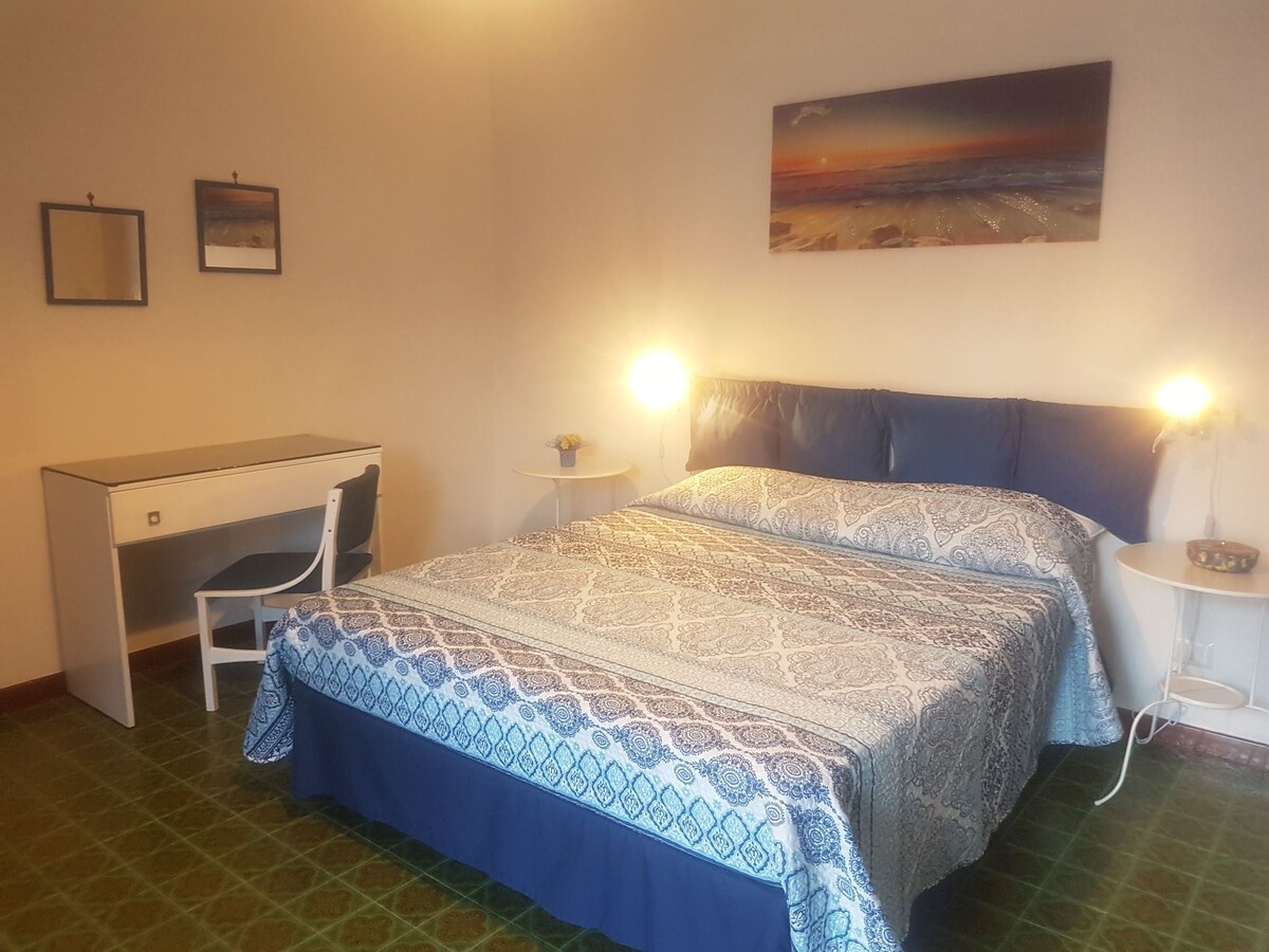 Amplio y cómodo apartamento a solo 200 metros del mar, en el centro de Santa Maria di Castellabate. Tranquilo y silencioso, orientado hacia el interior. Ubicado en el segundo piso, cuenta con 2 dormitorios, 2 baños, salón con sofá cama, zona de comedor y cocina. Equipado con TV, Wi-Fi, aire acondicionado, microondas, lavadora, lavavajillas y cuarto de lavandería. Estarás cerca de todo y a solo 5 minutos del mar. Aparcamiento disponible con coste adicional en julio y agosto.