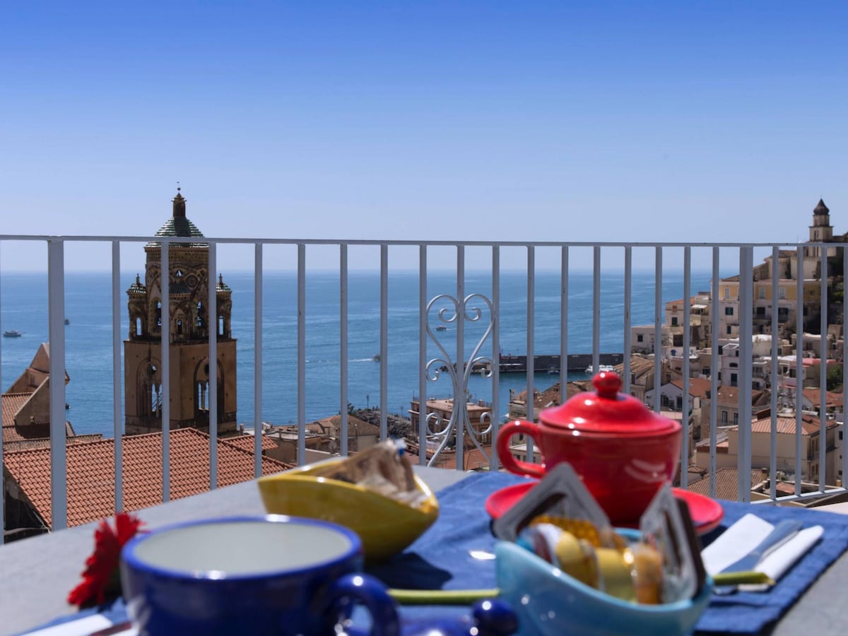 Guest house with stunning sea views of the Amalfi Coast, reachable via 160 steps passing through the characteristic Cathedral. Consisting of five triple rooms: a suite with a sea view terrace, two deluxe rooms and two standard rooms all with private bathrooms. Panoramic terrace overlooking the sea, from which you can enjoy complete relaxation.