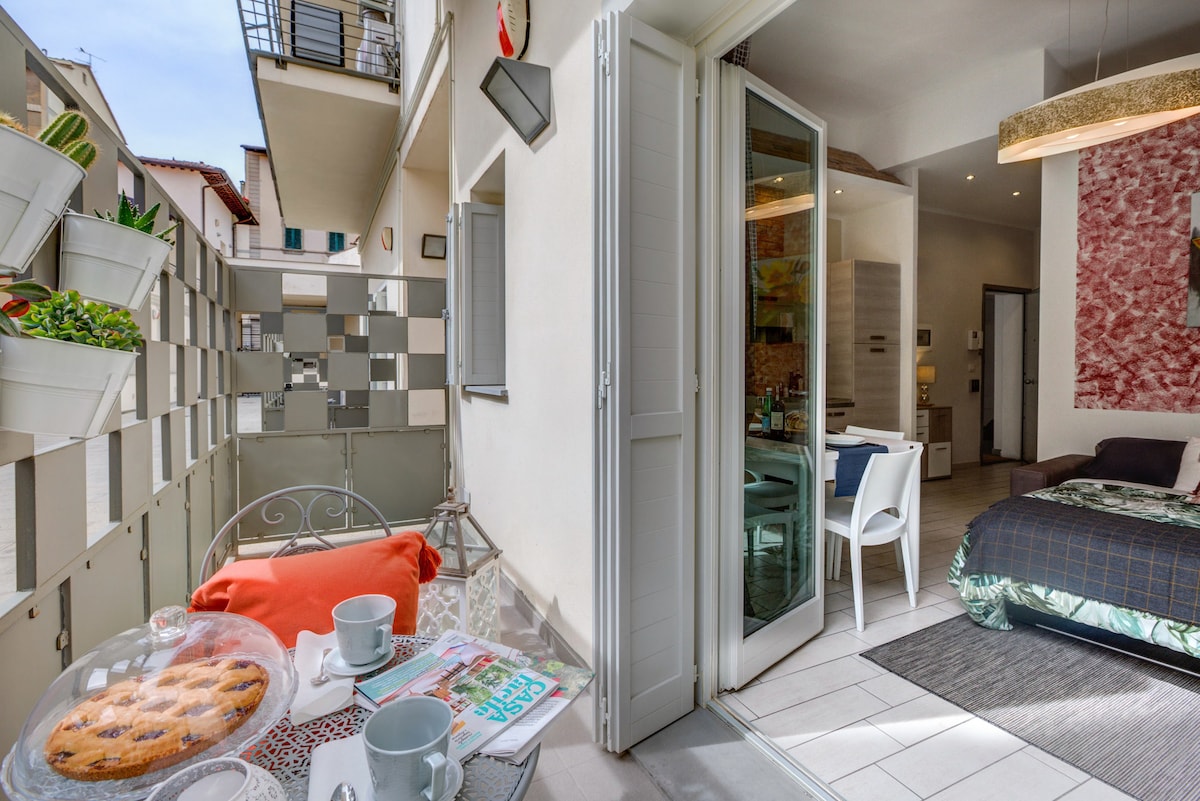 “Dante” - Immerse yourself in the essence of Florence at this refined 30 sqm studio, located on the first floor of a historic palazzo on Via dei Calzaiuoli, just steps from the majestic Duomo. A rare gem in the heart of the city, the private 35 sqm terrace offers a peaceful retreat with a table, umbrella, and chairs—perfect for open-air breakfasts, sunny lunches, or sunset aperitivos. Air conditioning, central heating, and elevator access ensure a stay of comfort and ease.