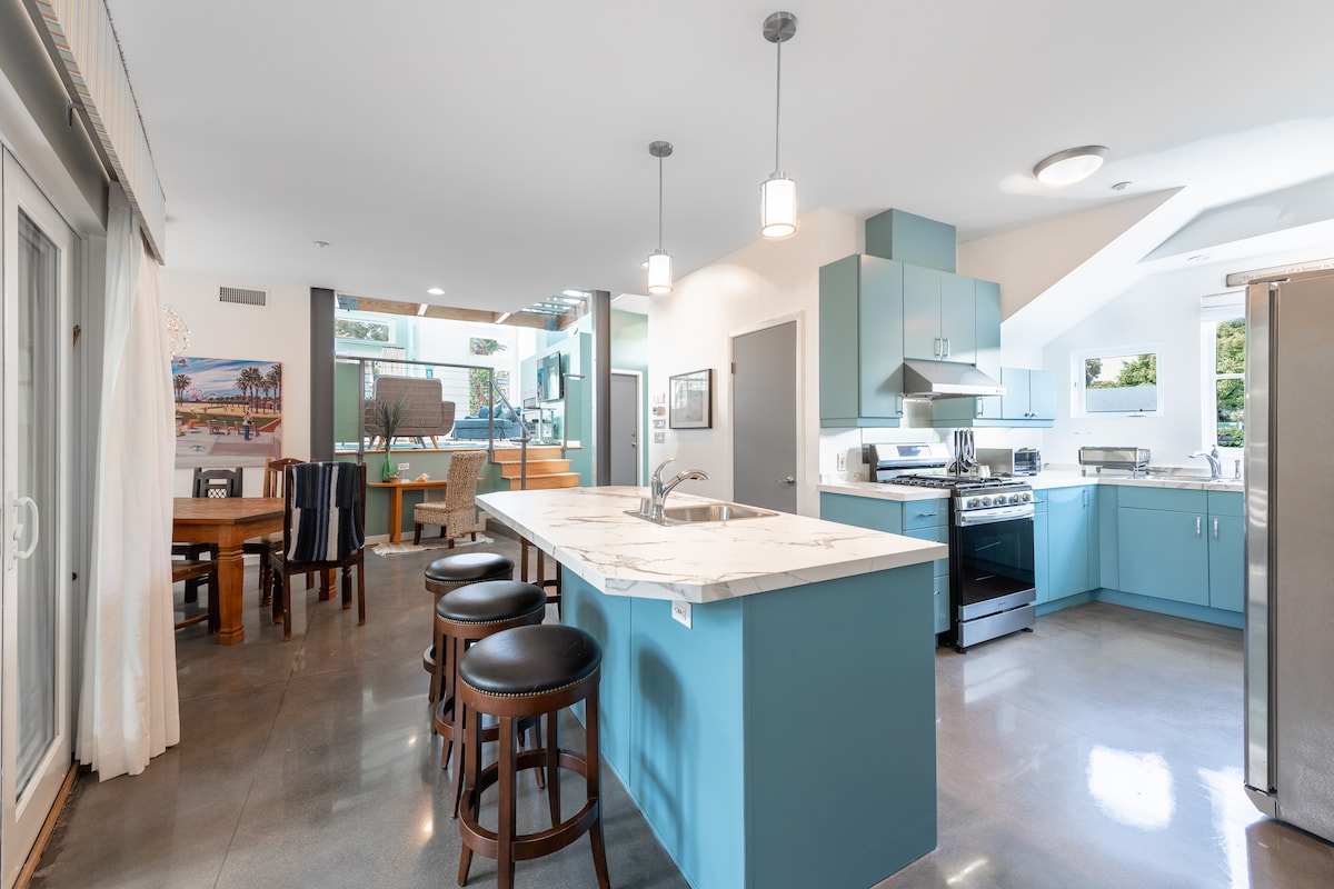 Nuestra HERMOSA casa, ubicada en el corazón de Santa Mónica, está a solo una manzana de la playa y de los MEJORES restaurantes y tiendas. A solo un par de minutos a pie del paseo marítimo y el muelle de Santa Mónica, ¡es realmente la ubicación perfecta para familias con niños! Con un garaje para 2 coches, aire acondicionado central, bicicletas para nuestros huéspedes, parrilla para barbacoa y dos terrazas en la azotea, ¡no puedes evitar amar nuestro hogar tanto como nosotros! **Consulta las tarifas de descuento según disponibilidad.**