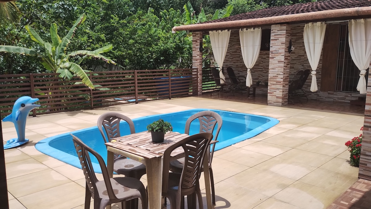 Relaxe com toda a família nesta acomodação tranquila. Uma casa bem ventilada, próximo a praia, com quartos confortáveis, cozinha ampla. E na área externa um lindo jardim com piscina, churrasqueira e um terraço enorme para descansar e se divertir.