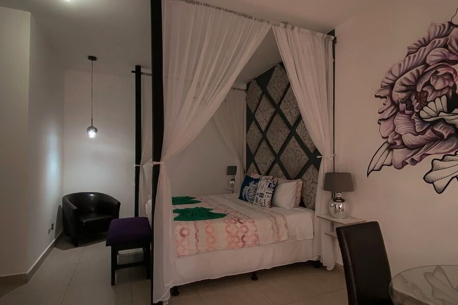 Muy comoda habitacion de hotel con desayuno incluido a la orilla de la piscina rodeada, ambiente familiar y tranquilo y agradable, atendido por su amistosa host, y porsupuesto amistoso staff, piscina gigante, y a 30 segundos a pie del mar, parqueo privado, WIFI de alta velocidad, espacio para co-working.