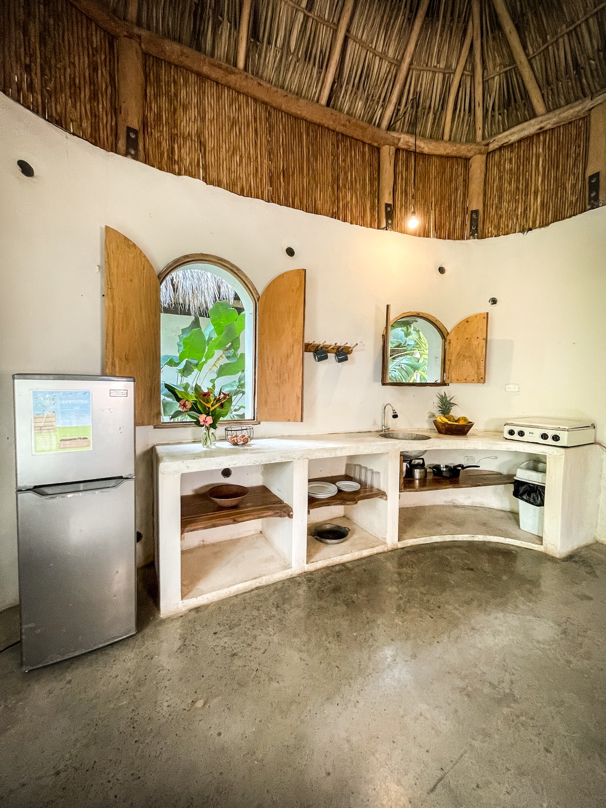 Tu hogar ecológico lejos de casa. Sumérgete en una verdadera ecológica recién construida 2 le el Villa. Brisa natural y luz, terraza privada silenciosa y segura... naturaleza con todas las comodidades. La villa se encuentra en un exuberante jardín a solo 150 metros de la playa, wifi, cocina, sala de estar y un hermoso y amplio baño con un diseño arquitectónico único que incluye paredes redondas y ventanas arqueadas. Paredes hechas de recursos naturales como el suelo, el techo está cubierto con el tradicional estilo nicaragüense «Rancho».