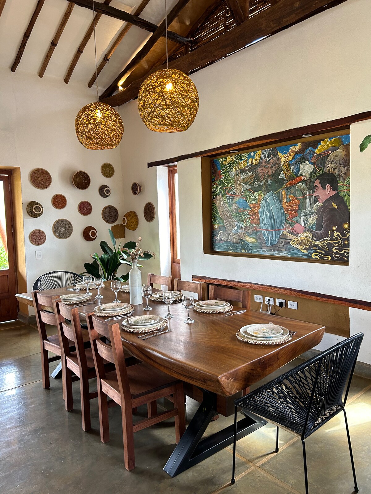 Esta es verdaderamente una hermosa propiedad con vista a la serranía de Uchata. Diez minutos a las afueras de Barichara, en el camino a Guane, esta finca de tabaco ha sido cuidadosamente renovada. La casa fue clasificada como una de las mejores en 2019 por la revista de arquitectura Axxis y ganó mención en el Bienal de arquitectura 2022. La cocina al aire libre y el área de la piscina hacen que cocinar sea un evento social. Hay un auténtico horno de barro y barbacoa para cocinar sobre madera.