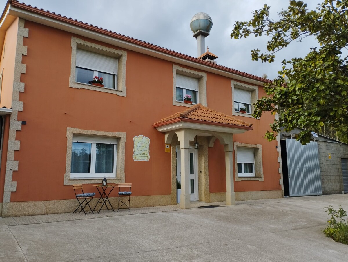 Acogedora casa rural en pleno Camino Portugués. A solo 6 Km de Santiago de Compostela, acceso a la AP-9 y a tan sólo 30 min de las Rias Baixas. A escasos metros parada de bus, farmacia, tienda de barrio y cajero. A 150m también hay una gasolinera Cepsa. Proximidad a restaurantes con comida típica de la zona. Un lugar para escapar del ajetreo de la rutina y abrazar el silencio y la naturaleza con todo el encanto gallego. Ubicación ideal para rutas de senderismo y excursiones culturales.
