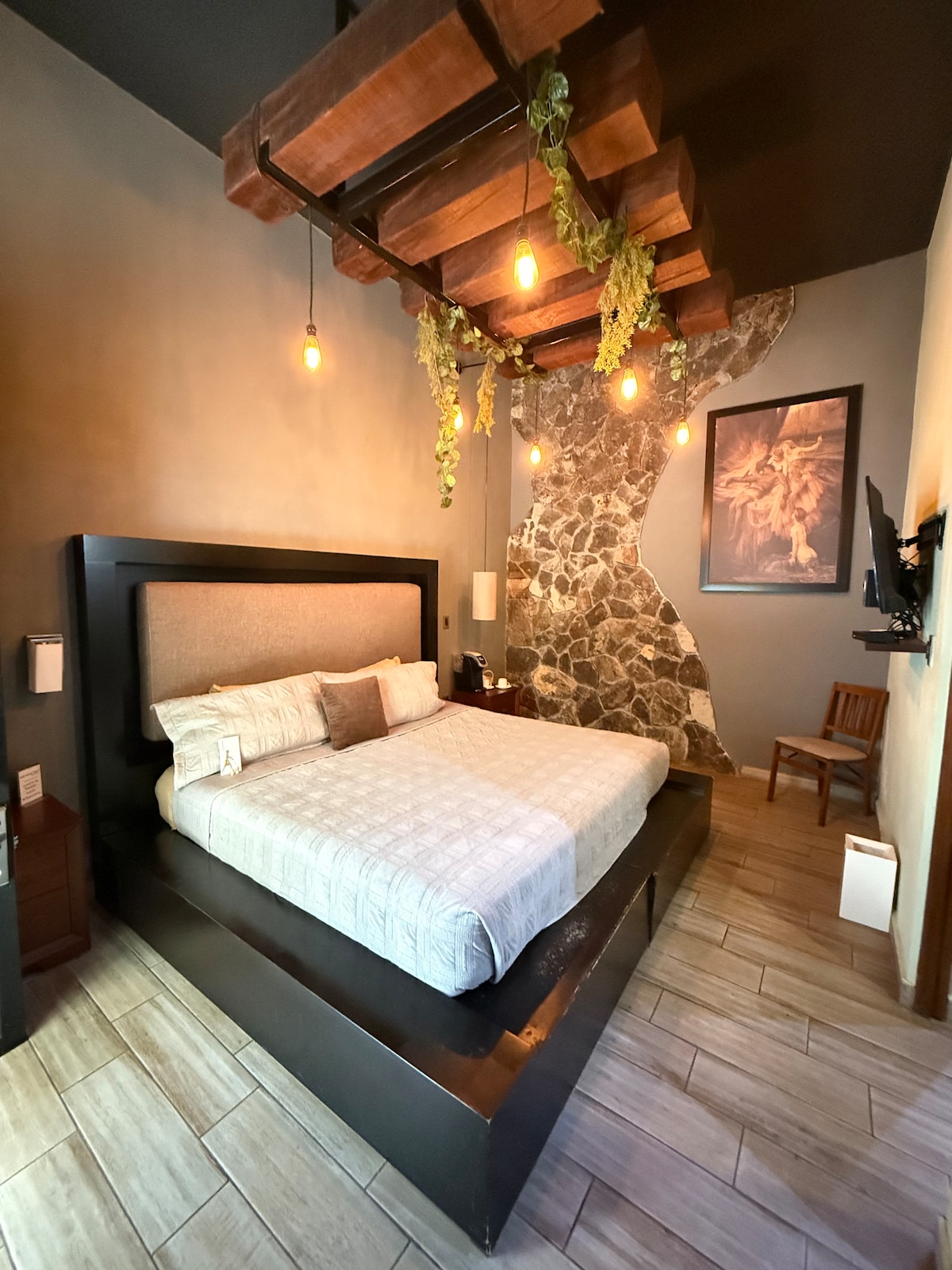 Q23 Apartahotel, En el Centro Histórico de Querétaro ¡Ubicación perfecta para explorar, sin sacrificar comodidad. A minutos caminando del auditorio arteaga, del Jardín Guerrero y de la vieja estación del ferrocarril. Que hay en tu suite: 1 cama king americana Entrada privada y autonoma Baño completo con agua caliente Privado Smart TV WiFi en todo el hotel Amenidades tipo Hotel Nota: Por el momento, NO contamos con estacionamiento.