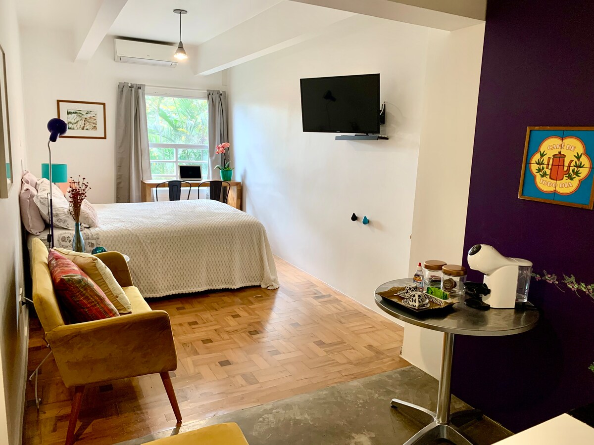 Studio Metro V Madalena. Jardim e boa internet