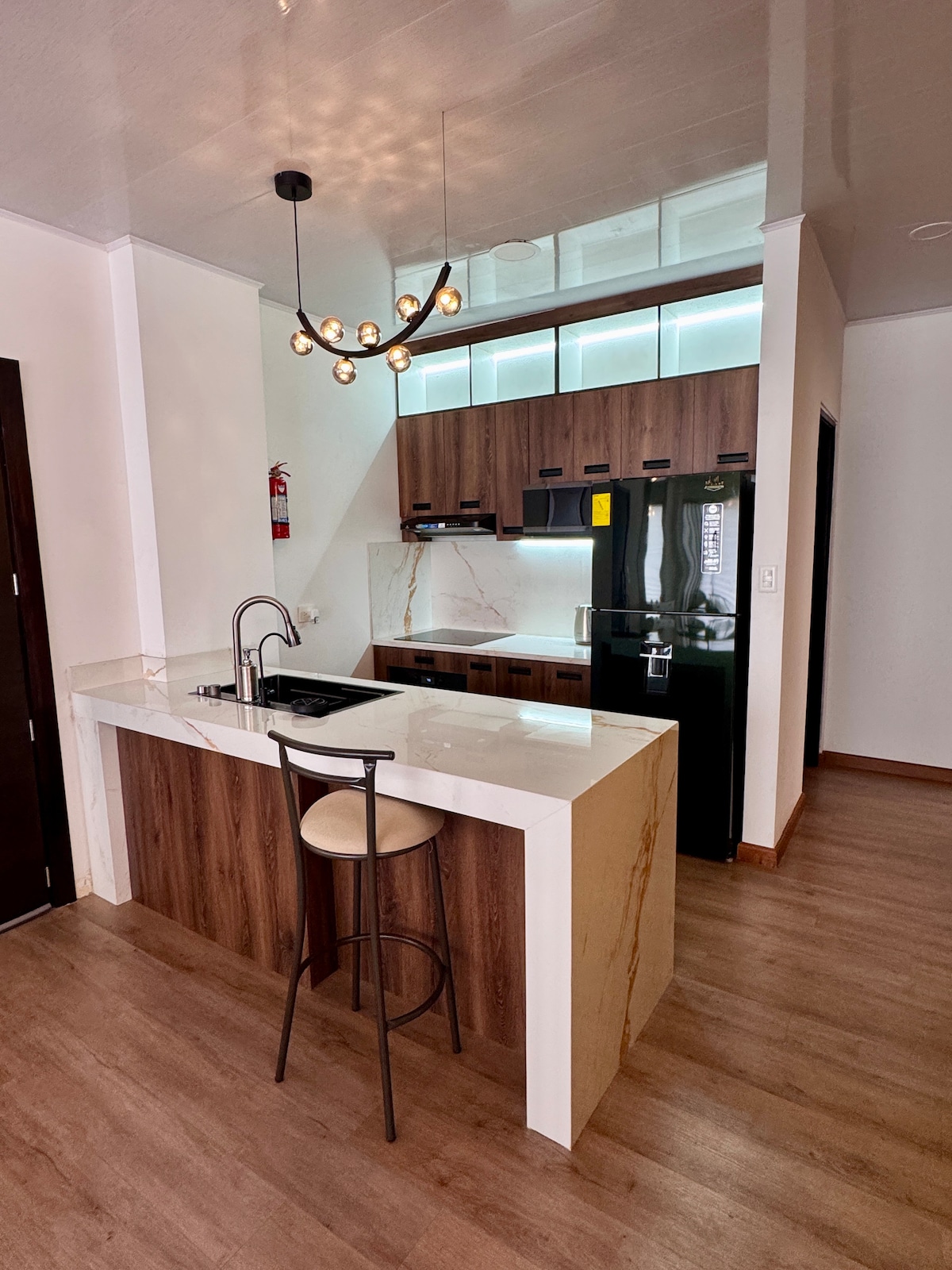 Escápte a un espacio moderno y lleno de estilo en Santo Domingo. Este departamento de lujo se ubica en una zona residencial segura, a pocos minutos del Paseo Shopping, del nuevo Bombolí Shopping, del Terminal Terrestre, Plaza La Quadra y la reconocida Calle del Colesterol, famosa por su oferta gastronómica. Disfrute de aire acondicionado en cada habitación, cine en casa, camas amplias de dos plazas y media, botella de vino de cortesía y parqueadero privado con portón eléctrico.