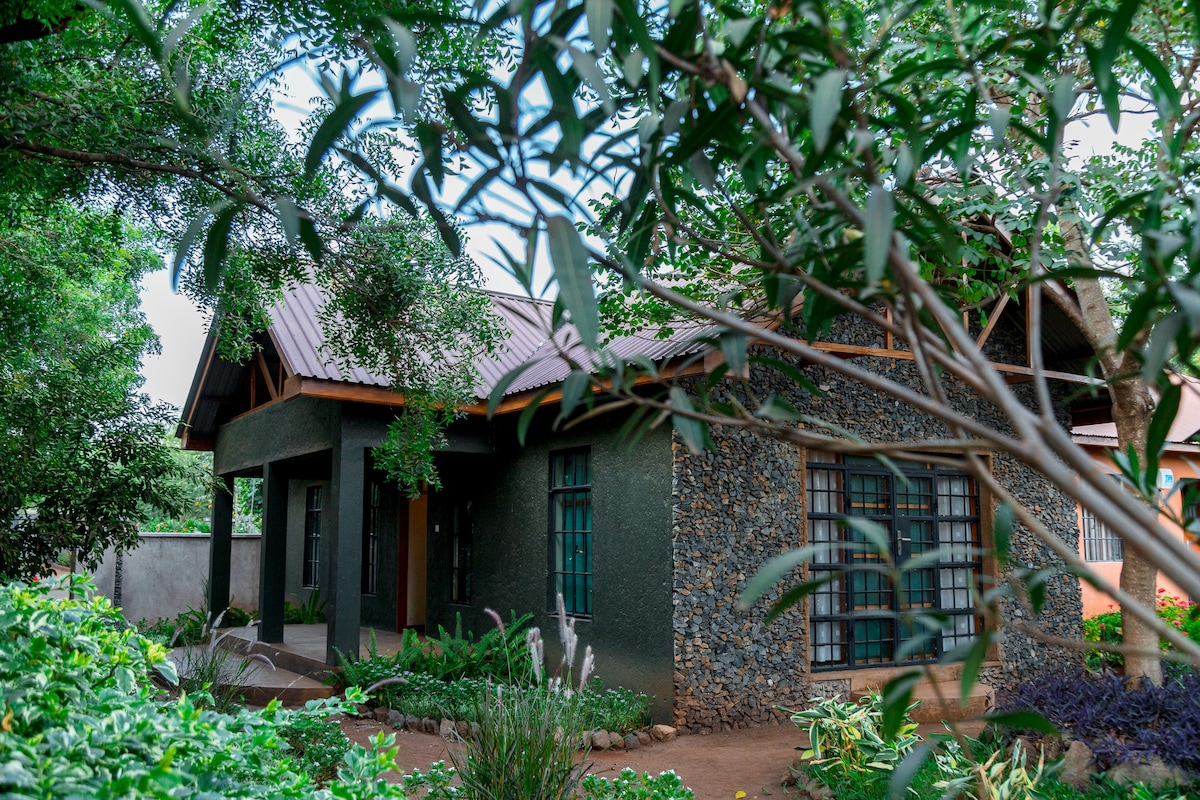Relájate en esta pequeña casa de nueva construcción. Perfecta para alojarte antes o después de tu safari. Lejos del ajetreo de la ciudad y, sin embargo, a pocos minutos en coche, te ofrecemos un lugar que te hará sentir como en casa. Disfruta de las vistas y de la puesta de sol en el balcón o reserva el desayuno con nosotros y disfruta de las vistas de los plátanos y del monte Meru. La galería abierta te invita a relajarte. Si necesitas algo, siempre estamos ahí.