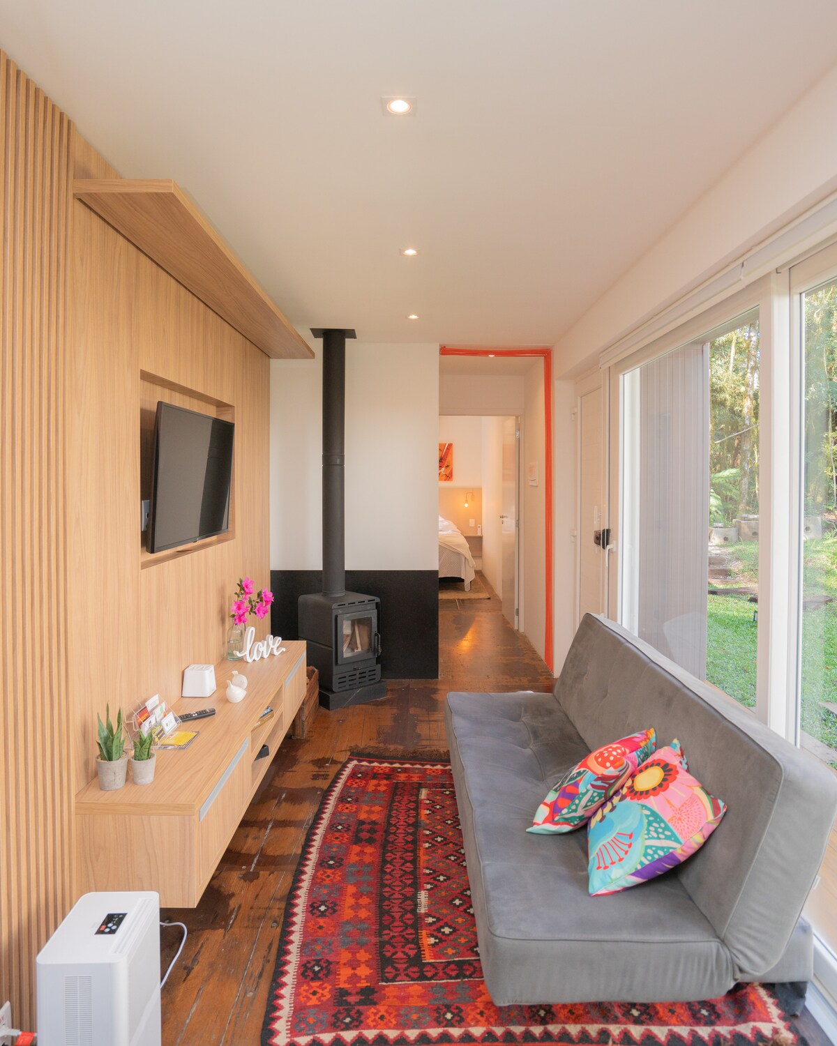🏡 • Container Inn en medio de la naturaleza. Ubicado en Vila Oliva - RS, a 21 km de Gramado. Vista del valle con montañas y una hermosa cascada. Nuestra casa de huéspedes tiene cocina completa, jacuzzi, aire acondicionado, calefacción, sistema inteligente Alexa, calentador de toallas, terraza con vistas al valle, área de ocio con columpios y una fogata. Además de una estancia acogedora, puedes sorprender a tu amor con hermosas decoraciones románticas y un paseo en quad. ¡Haz tu reserva!