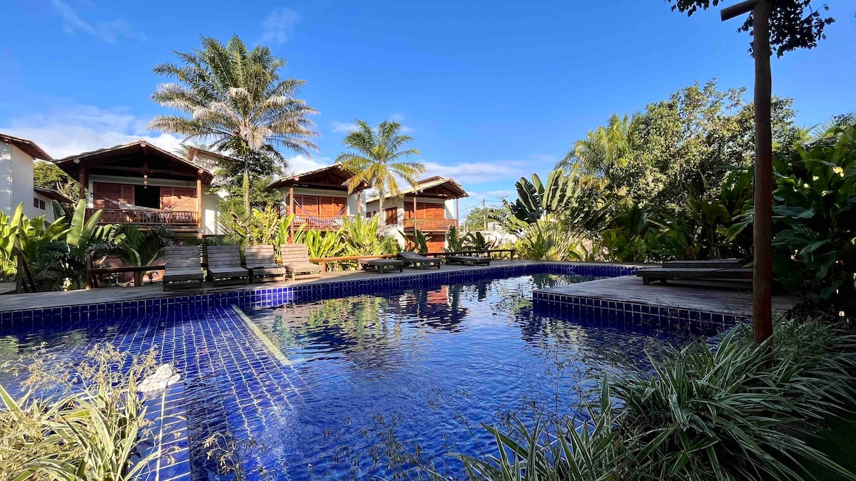 Alójate en un moderno bungalow junglish a solo 100 metros de la playa de Concha y a un corto paseo del lugar para ver el atardecer, tiendas y restaurantes. En 10 minutos se puede llegar a las playas de Resende, Tiririca y Ribeira. Cada bungaló ofrece cocina, dormitorio con mosquitera, sala de estar, baño, wifi rápido y patio con hamaca rodeado de jardines tropicales. Disfruta de clases de yoga en nuestro estudio en el jardín, organiza clases de surf o excursiones y cuenta con nosotros para obtener consejos locales para que tu estancia en Itacaré sea inolvidable.