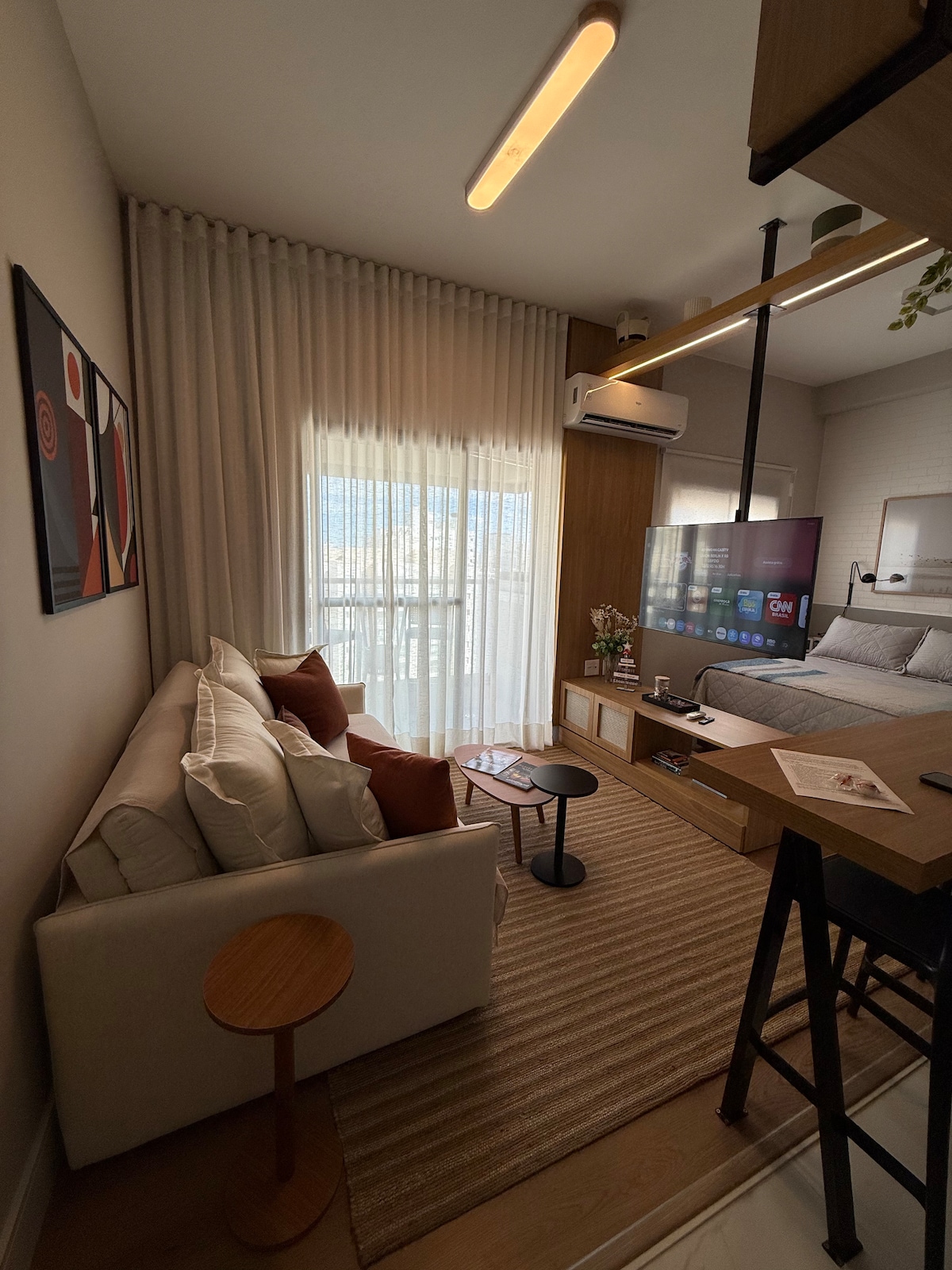 Maravilloso espacio y súper acogedor. Tiene capacidad para 4 personas. Aire acondicionado, limpieza diaria incluida, smart tv en la sala y en el dormitorio con todos los canales, cocina completa, WIFI, muebles nuevos y encimera para home office. Edificio con piscina, gimnasio, sauna, garaje cubierto y recepción 24 horas. Situado en el Space Valley Hotel, que cuenta con un famoso restaurante en la terraza con las mejores vistas panorámicas de la ciudad. Junto al CTA, Shopping y otros tipos de comercios. Fácil acceso al anillo vial y a Dutra