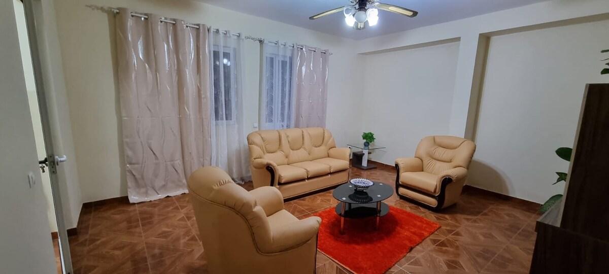 Apartamento é independente e acolhedor na casa dos amigos (Tchuca e Osvaldo), na Cidade de Calheta São Miguel (Cabo Verde) Numa área simples recebe quatro pessoas no maior conforto: 2 quarto, 1 casa de banho, sala de estar, cozinha equipada e um pequeno quintal
