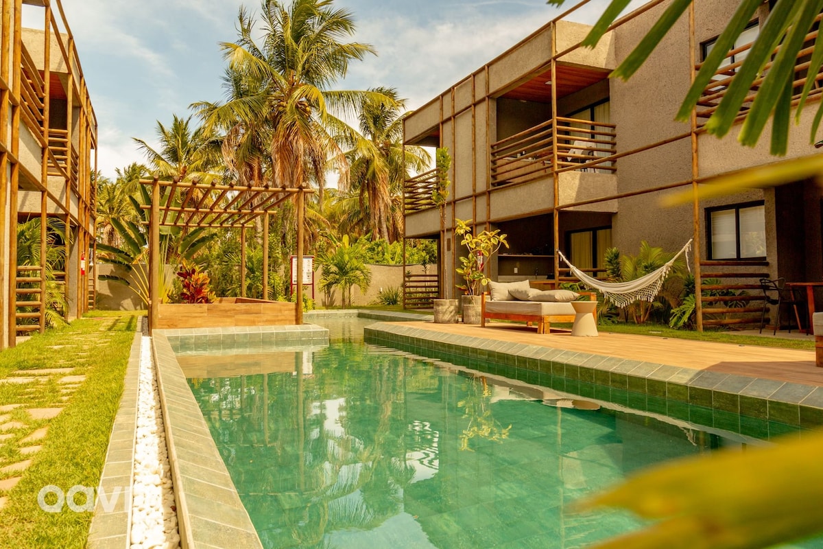 Una experiencia única, a pocos pasos de la playa más hermosa de Brasil. Espacio con encanto, nuevo, totalmente equipado para ofrecer días memorables en la Ruta de los Milagros. Inaugurado en octubre/2024, usted y su familia estarán entre los primeros huéspedes en conocer nuestro paraíso. Recepción 24 horas, loft con aire acondicionado, Smart TV, ropa de cama nueva de 650 hilos, balcón gourmet, piscinas para adultos, niños y jacuzzi, kit de playa y diversión. ¡Prepare el protector solar y sea bienvenido!