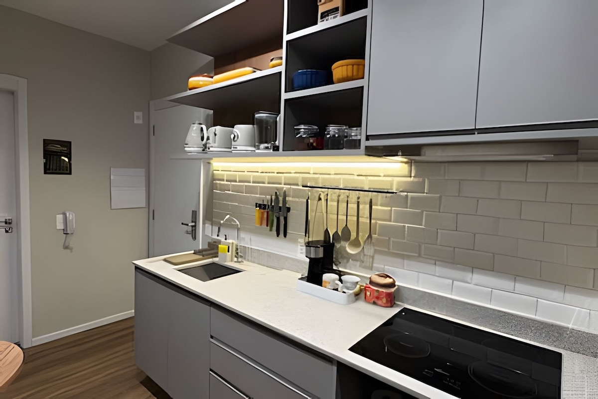 Cómodo Airbnb en medio del centro urbano urbano de servicio completo, bordeado de árboles, junto al mayor Centro Tecnológico de SP, Santa Efigênia. El espacio cuenta con aire acondicionado cálido y frío, cama cómoda, agradable balcón para disfrutar de una escapada urbana, Smartv, wifi de alta velocidad, cocina completa para una estancia cómoda, toallas de gran calidad, gran iluminación, además del edificio tiene lavandería, piscina, sauna, conserje digital y varias tiendas alrededor.