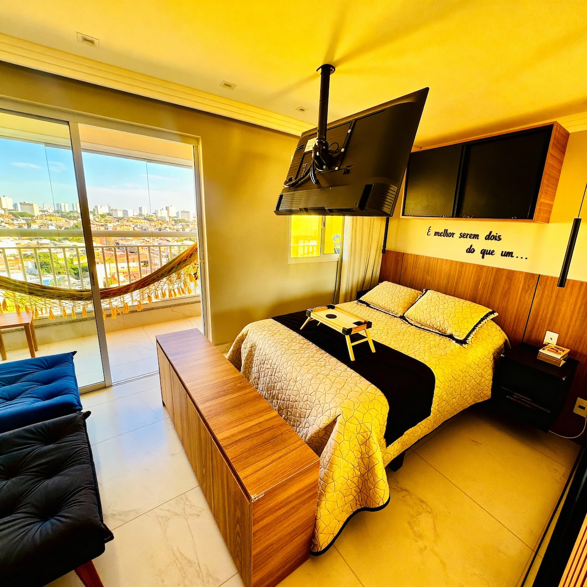 Studio de Luxo Centro de Guarulhos Via Alameda. Apenas 15 minutos do Aeroporto Internacional de Guarulhos (GRU) A 7 minutos da Rodovia Dutra, principal via de acesso a São Paulo Shopping Maia a poucos minutos, com diversas opções de lazer, gastronomia e compras Supermercado literalmente na porta, além de farmácias, padarias e restaurantes ao redor Parque próximo, ideal para passeios em família e para quem viaja com crianças Habib’s e outras opções gastronômicas logo ao lado