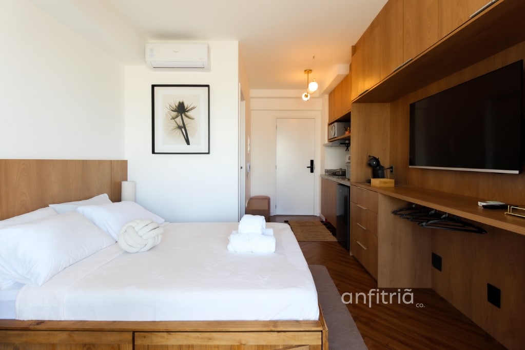 Estudio nuevo y totalmente equipado en un edificio de reciente apertura en Santo Amaro. Disponemos de todo lo necesario para una estancia cómoda y funcional: aire acondicionado, wifi, cocina completa con cafetera, horno, menaje y mucho más. También proporcionamos ropa de cama para que su estancia sea aún más cómoda. El edificio cuenta con portero 24 horas, piscina, gimnasio y lavandería. ¡Este estudio es el equilibrio perfecto entre ocio y trabajo!