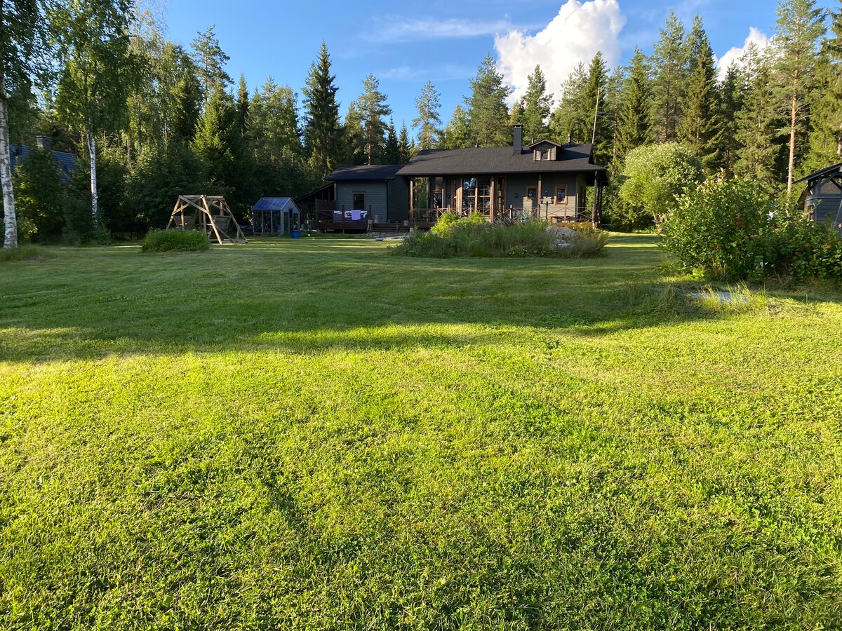 La cabaña, construida en 1980, ofrece la oportunidad de experimentar la auténtica vida cotidiana finlandesa en la zona del Geoparque de Rokua, junto a la histórica central eléctrica de Jylhämä. Un gran patio con césped, una sauna de madera, tranquilidad, cerca del lago Oulujärvi y el Parque Nacional Rokua, y la naturaleza circundante garantizan una experiencia inolvidable. Hay kayaks, canoas y bicicletas gordas disponibles para alquilar durante tu estadía. La etiqueta Sustainable Travel Finland habla del turismo sostenible. Vive como un habitante más: ¡bienvenido!