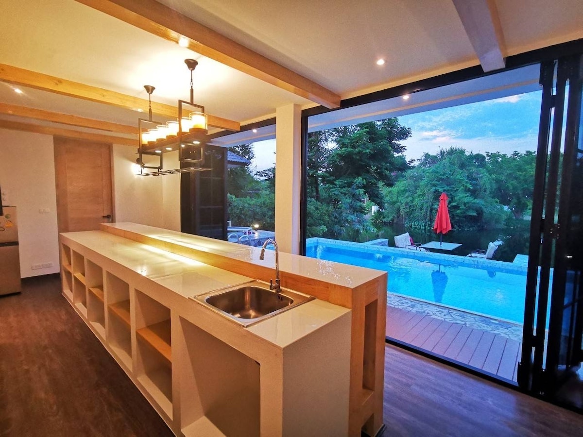 2️⃣ Exclusiva villa moderna con piscina Dragon Palace en el centro de Chiang Mai.Galardonada con el Premio al Diseñador.Reportaje de televisión. Recomendado por estrellas en Facebook.