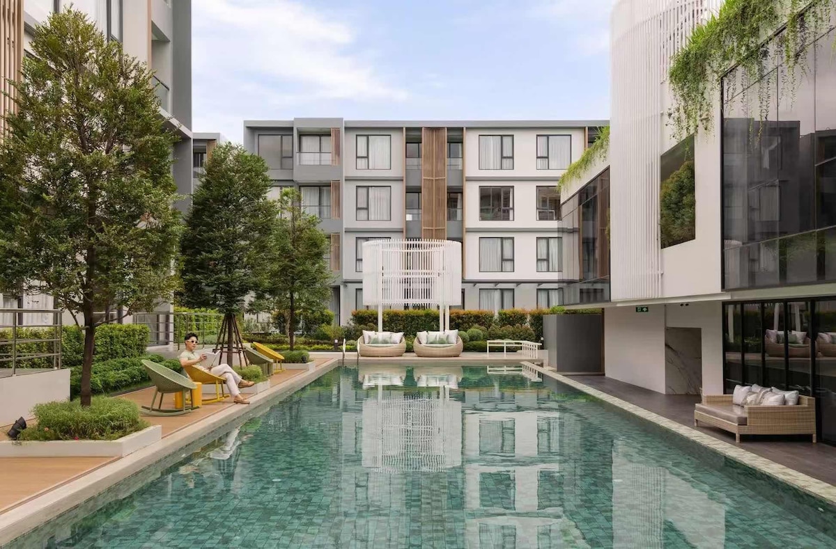 This special 2 bedroom 2 bathroom apartment is close to everything, making it easy to plan your visit. 10 min from the airport and 15 min to the old Moat City. Shopping restaurants weekly market 1km away. Major highways are close. The modern apartment on the 1st floor is private and offers a peaceful sanctuary after a busy day. Ground floor swimming pool Golf courses Gymkhana & Pimantip 10 min away Gasson Legacy & Panorama 25min Gasson Khuntan 40min North Hill 20 min Highlands 50 min