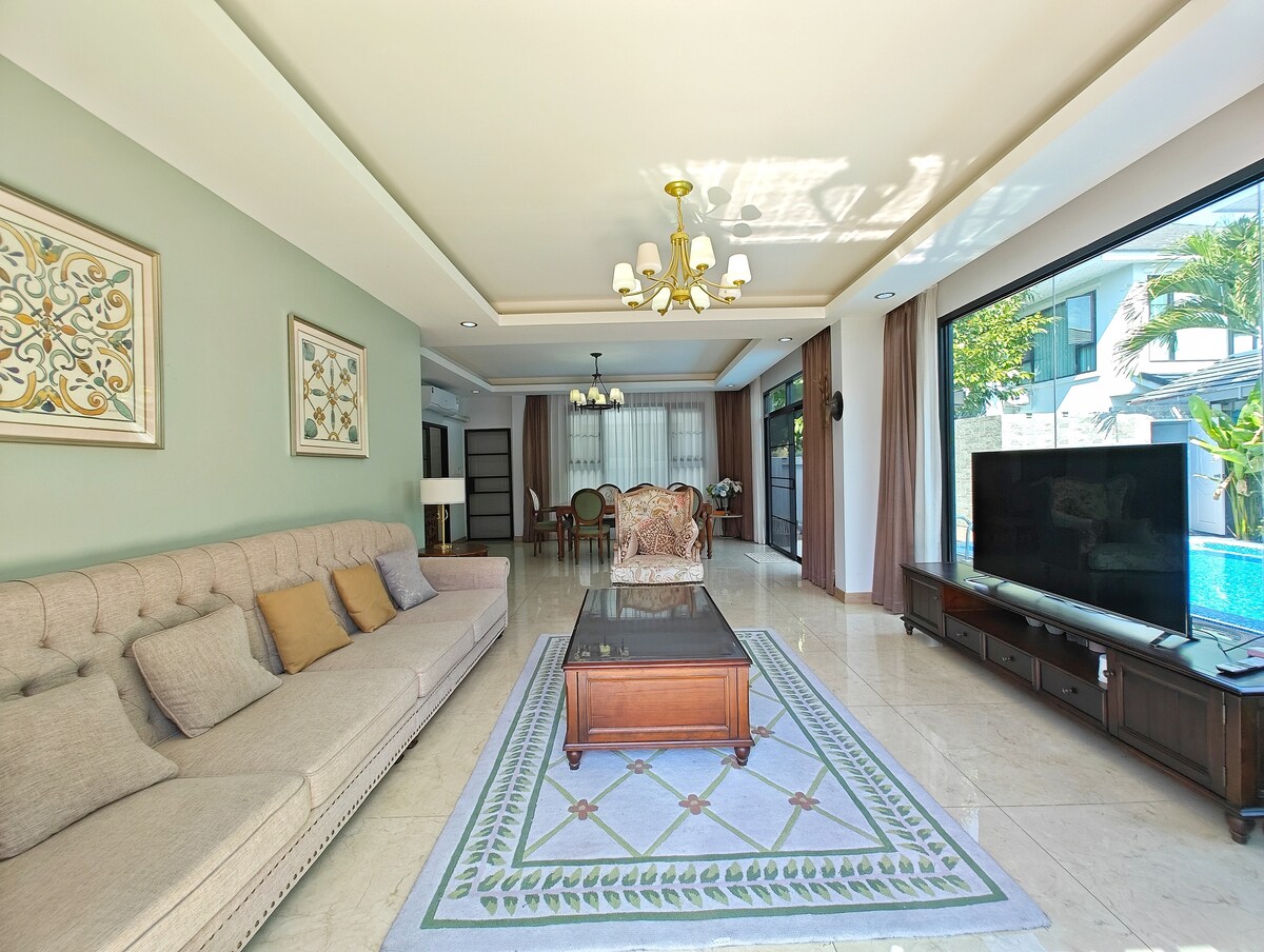 Villa con piscina de 6 dormitorios con karaoke y mesa de billar cerca del golf.