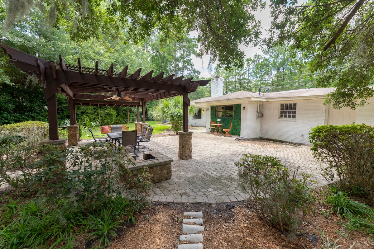 The Pinterest-worthy retreat for your group in a quiet peaceful neighborhood just outside of Savannah. Spend time in the backyard playing outdoor games or relaxing under the pergola. Move inside to enjoy the spacious, mid-century modern design throughout the living spaces and bedrooms. Kitchen is fully stocked so you can cook if you want! We are just minutes from Savannah Airport & Pooler, 20 minutes from downtown Savannah, 45 minutes from Tybee Island and 50 minutes from Hilton Head.