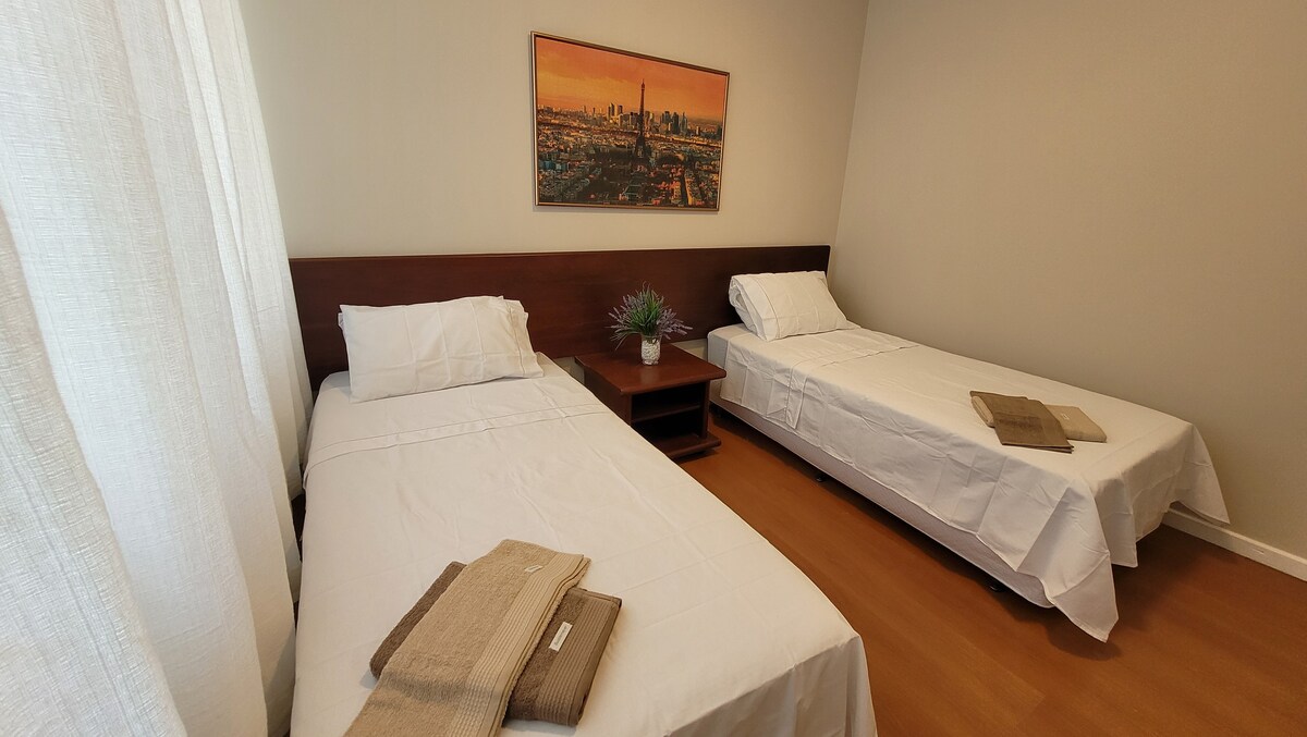 Con 70 m2 , para aquellos que buscan privacidad e independencia . En Savassi, a dos cuadras de Praça da Liberdade y Shopping Pátio Savassi. Con una suite, baño social reversible, sofá cama para los huéspedes, ventana de la suite antirruido, habitación con aire acondicionado y habitación, wifi 300 megas, smartv de 75 pulgadas, Hometheater, cocina completa, microondas, servicio de habitaciones, camarera, valet, piscina , gimnasio, sauna, restaurante y conserje las 24 horas.