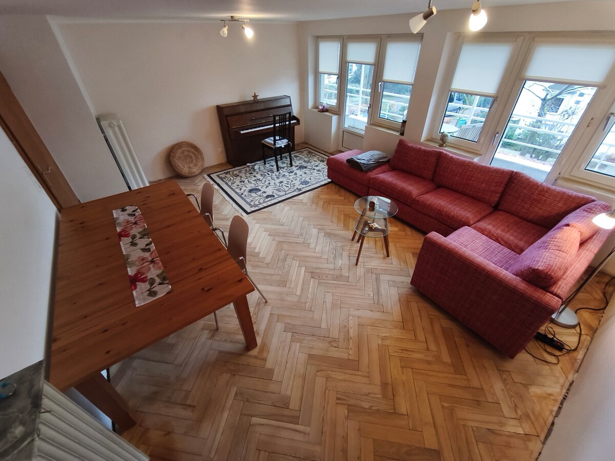 Small but practical, you live in a combined living/bedroom with a home office workstation. We offer you a small, modern, well-equipped single kitchen. The kitchen is equipped with sufficient cutlery, crockery, glasses, pots and pans etc. A small mini oven or clothes horse is available on request. In the bathroom with WC/shower, you will find free towels, bath towels and a hairdryer. A high-quality box-spring bed offers a pleasant night's sleep.