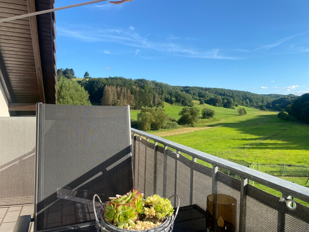 Holiday flat instead of hotel - more space, more comfort, more freedom! - Only 20 minutes to Saarlouis and 40 minutes to Trier, Saarbrücken and Luxembourg - 2 bedrooms (2 single beds and 1 double bed) -Balcony with a view of the countryside - Free parking right outside the door - Fast W-Lan - Spacious couch - Daylight bathroom - Fully equipped kitchen with free tea and coffee for the first few days - Ironing board and iron, as well as washing machine and tumble dryer for use by arrangement.