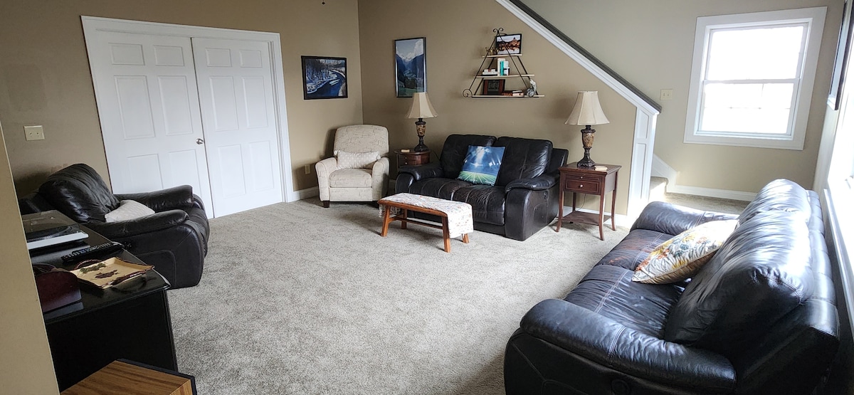 Hortons Haven es un apartamento sótano caprichoso y familiar escondido cerca de las hermosas rutas de senderismo y maravillas naturales de Ithaca. A solo 15 minutos del centro de la ciudad y a 20 minutos de Ithaca College y Cornell University. El espacio es cómodo y está diseñado pensando en las familias: hay mucho espacio para relajarse después de un día al aire libre y detalles bien pensados que facilitan viajar con niños. Estarás a solo unos minutos de bosques, cascadas y senderos sinuosos que despiertan la maravilla a cada paso.
