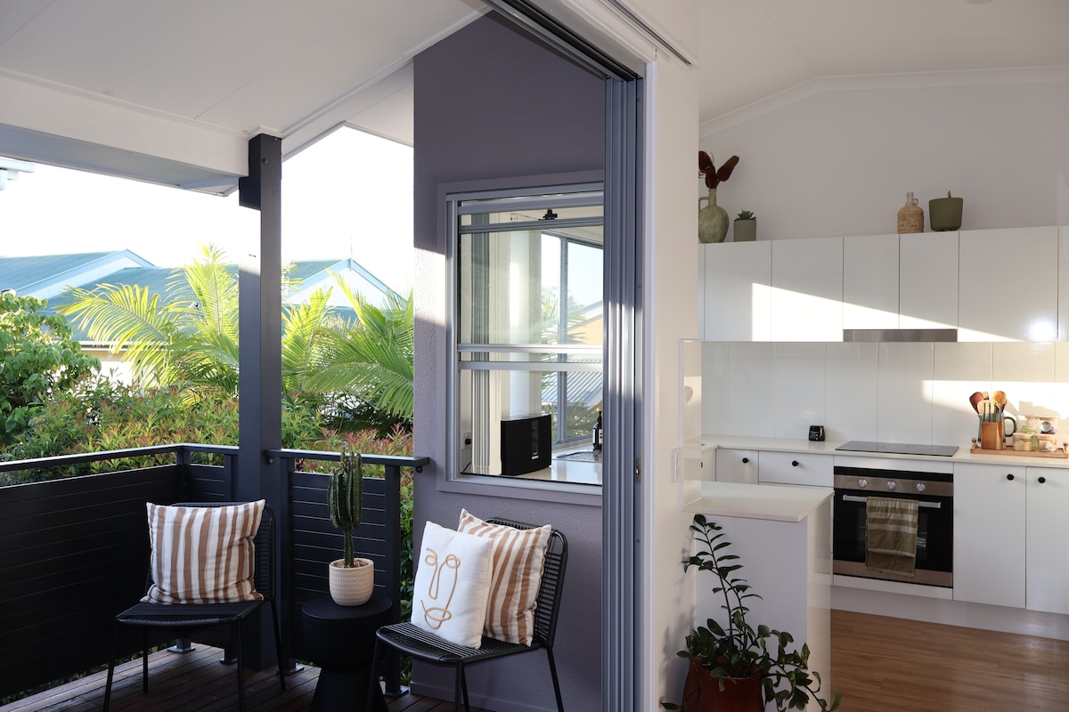 Esta moderna unidad de un dormitorio y un baño es totalmente independiente y tiene vistas a la piscina. Tiene su propio acceso a la puerta principal y acceso independiente a la piscina de USO EXCLUSIVO. Situado a 150 metros a pie de la hermosa playa de Buddina y a 150 metros también del río Mooloolah. También está a un kilómetro de un gran centro comercial con cines y a diez minutos en coche de la icónica Mooloolaba. Al otro lado de la carretera, puedes ir caminando a una selección de cafeterías y restaurantes tailandeses.