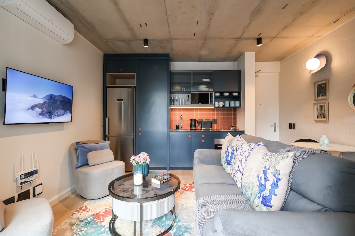 Ubicado a 3 minutos a pie de la playa, este luminoso y espacioso apartamento de 1 dormitorio es la combinación perfecta de felicidad junto al mar y lujo de primer nivel. Con un patio que conduce a una amplia terraza, puertas correderas en la sala de estar y grandes ventanales en el dormitorio, el apartamento está inundado de luz natural y aire fresco. Junto con la estética neutra, la sala de estar de planta abierta, los acabados de buen gusto y los electrodomésticos convenientes, instalarse en tus vacaciones junto a la playa es fácil cuando te hospedas aquí.