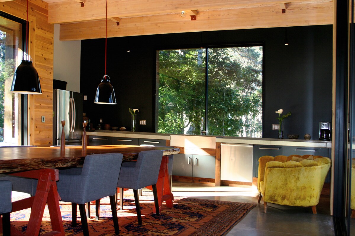 The Gray Fox Dacha, un refugio de diseño conceptual en Sea Ranch, decorado con materiales elementales y orgánicos. Con espectaculares vistas al mar y situada en una ladera entre fragantes pinos costeros, imponentes secuoyas y robustos cipreses azotados por el viento, esta casa inteligente, luminosa y de diseño ecléctico, es etérea y espaciosa. La Gray Fox Dacha ofrece una constelación de espacios cuidadosamente seleccionados con artefactos de origen mundial de la colección personal del anfitrión.
