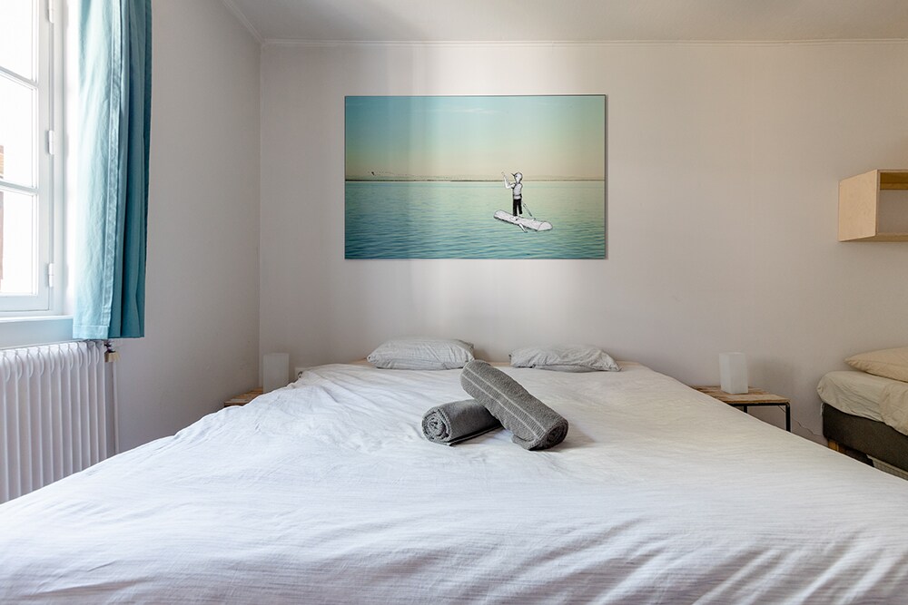 Todas las comodidades de Bodygo Surfhouse, (préstamo de material de surf, skate, sauna, hammam y jacuzzi de abril a octubre) al precio más bajo. Habitación privada con colchón de alta comodidad, se proporciona ropa de cama, lámpara de noche, enchufe eléctrico y amplio balcón contiguo. Cama de 140x190 y litera de 90x190. Baño compartido.