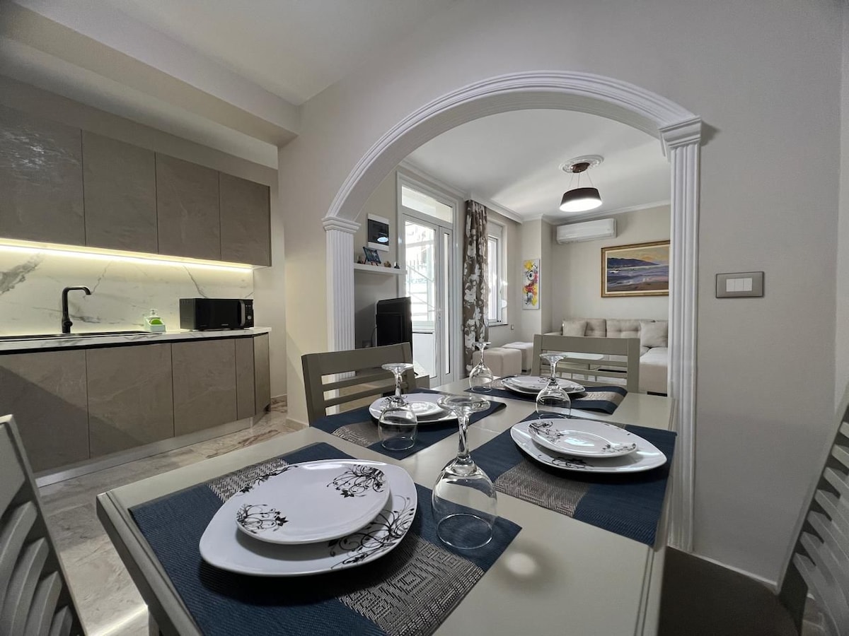 Situado junto a la colina, aire fresco y limpio. Un lugar tranquilo para familias, a 5 minutos a pie del mar y del paseo marítimo Lungomare. Apartamento totalmente amueblado con todas las comodidades para que te sientas cómodo y relajado. Tiene un estilo elegante y todas las comodidades. 2 dormitorios, 2 baños y 2 balcones, uno de los cuales es de 20 m2, para disfrutar de la cena mientras ves las puestas de sol sobre el mar, así como la vista de la montaña cercana. Todos los restaurantes, bares y supermercados están a poca distancia a pie, a solo 5 minutos a pie.