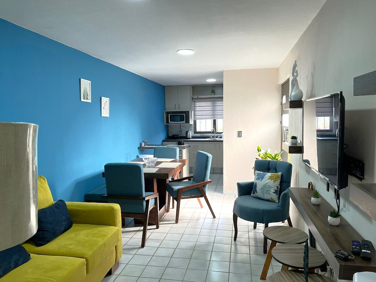 Departamento moderno en Huentitán el Alto, Guadalajara , a 15 minutos del centro de la ciudad dentro del complejo Punta Alta , muy cerca del Zoológico. Se encuentra en el 4 piso . Por lo que lo hace más tranquilo y aislado de los ruidos. No cuenta con elevador pero si con todas las amenidades para que se sientan como en casa con productos de calidad. Lavadora y secadora, café , especias para cocinar. Bocina Alexa Echo. TV por cable . Internet de alta velocidad .