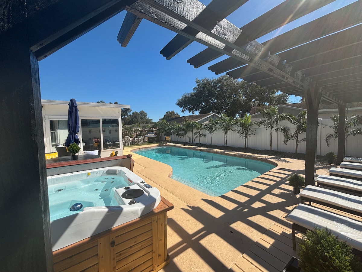 ¡NUEVO! Moderna y elegante casa de 5 dormitorios con INCREÍBLE PISCINA CLIMATIZADA GRATIS, jacuzzi, parrilla, fogata y pérgola súper limpia con 8 tumbonas que te invitan a disfrutar del sol de Florida ☀️ Este encantador casa recién terminada una renovación masiva y es nueva y moderna. ¡Todos los muebles, desde camas hasta sofás y obras de arte, son nuevos! Reserva con confianza: tu anfitrión tiene 6 años de experiencia como anfitrión y es un Superanfitrión de otros 11 alojamientos en Airbnb ¡A 9 minutos en coche de la 🏖️ playa! A 1 minuto en coche de las tiendas
