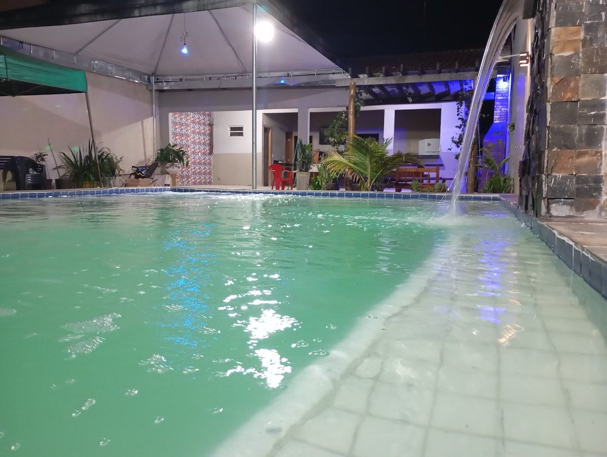 Lugar familiar, con piscina, bar y campo de fútbol. Acogedor por su decoración rústica y su hermosa iluminación natural. Cerca de la ciudad de Senador Canedo y a 12 minutos del centro comercial Flamboyant en Goiânia. CASA DEL ANFITRIÓN A 150 M DE LA UBICACIÓN. SI TRAES PERROS, MANTÉNLOS CON CORREA PARA QUE NO ATACQUEN A LAS AVES EN LAS INSTALACIONES. WIFI DISPONIBLE. NO PROPORCIONAMOS ROPA DE CAMA. LOS NIÑOS MAYORES DE 2 AÑOS PAGAN NORMALMENTE. LOS VISITANTES PAGAN UNA TARIFA DE 70 R$, 80,00 R$ EN VACACIONES.