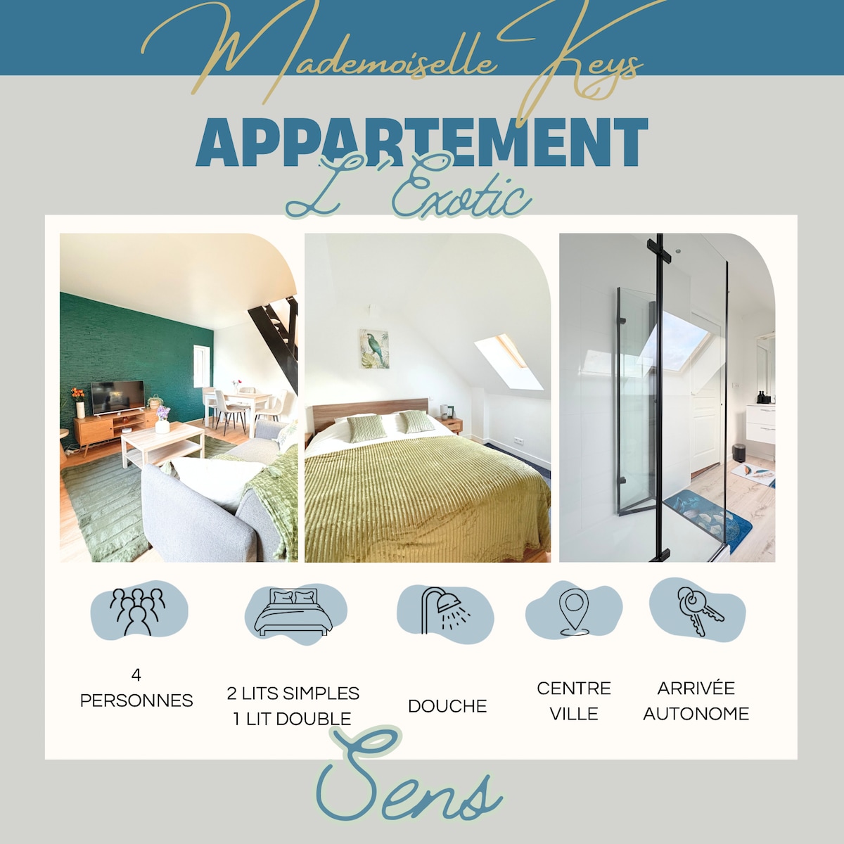 Hola a todos, ¡¡¡Otros alojamientos similares disponibles, póngase en contacto conmigo!!! Ofrezco este hermoso apartamento único en Sens, súper luminoso, decoración moderna y habitación con bañera de hidromasaje privada. Para una estancia romántica o para un viaje de negocios, este alojamiento se adaptará a cualquier tipo de situación, muy bien situado, a 5 minutos del centro de la ciudad con plazas de aparcamiento gratuitas al pie del edificio. El descanso y el bienestar serán necesarios.