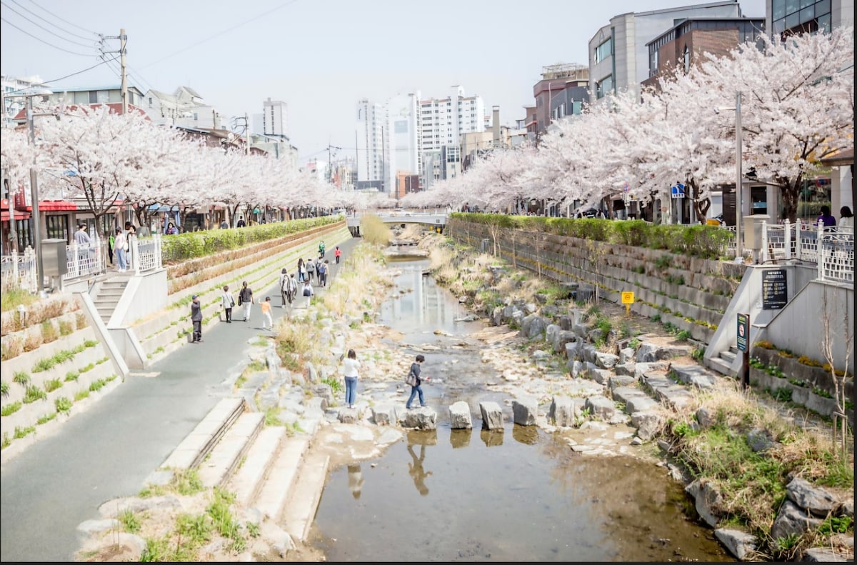 Suite familiar · 2 baños · A 3 minutos a pie de lugares famosos por los cerezos en flor · Estacionamiento gratuito · A 9 minutos de Myeong-dong · A 7 minutos de la estación de tren