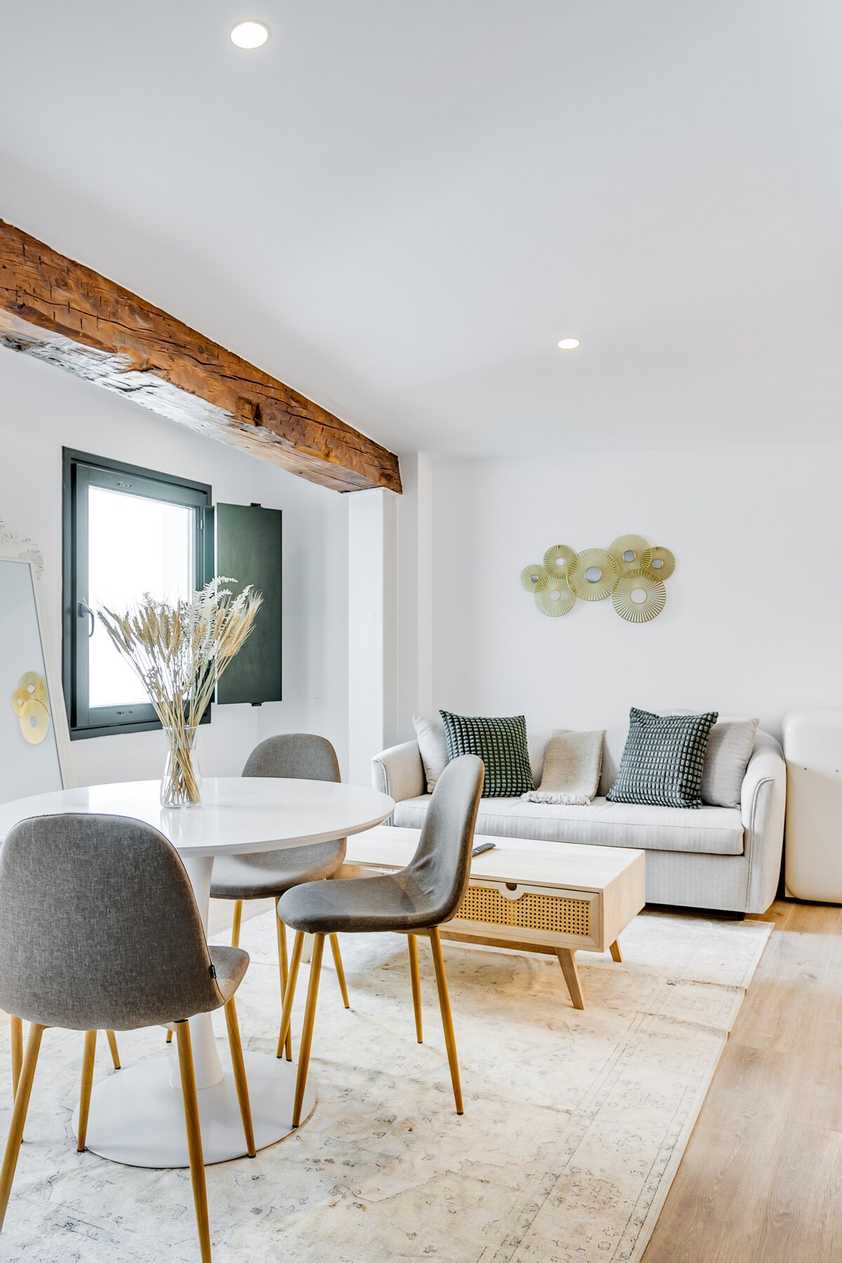 Disfruta de esta increíble Suite tipo Dúplex, situada a escasos metros de la Plaza del Salvador, Plaza del Carmen y Torre de Mangana. Dicha Suite dispone de habitación principal con cama de 150 cm de ancho, sofá cama doble, 2 baños privados y bañera hidromasaje en la segunda planta. Lo completa un microondas, tostadora, cafetera de cápsulas, lavavajillas y frigorífico mini. Capacidad máxima 4 personas. En el edificio encontrará un cuarto de lavado con lavadora a su disposición.