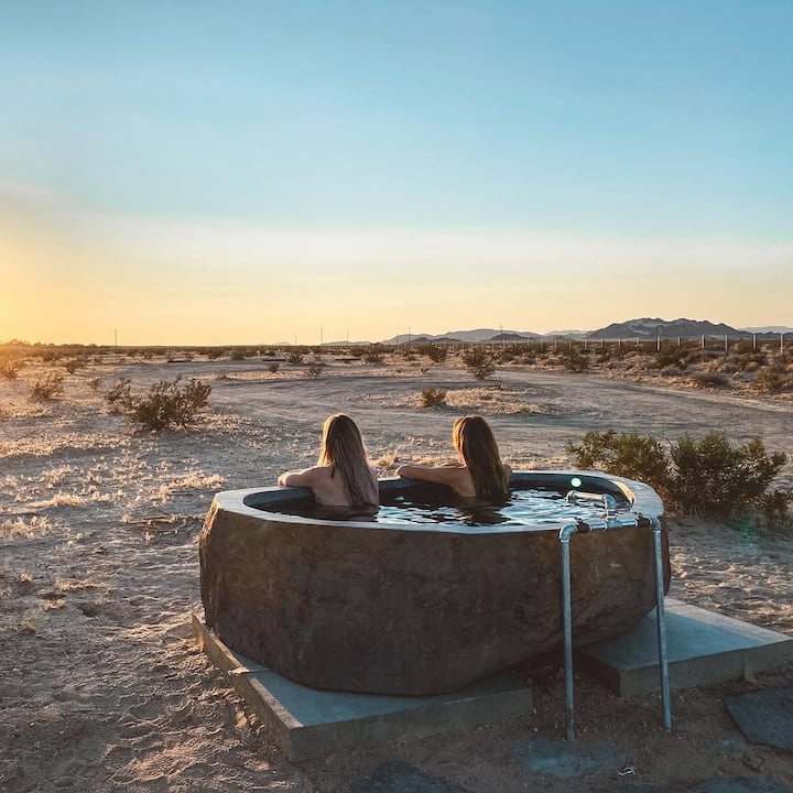 Relájate antes o después de Coachella con una sesión exclusiva en aguas termales en nuestra espaciosa bañera de agua mineral para 12 personas. Perfecto para recuperarse después de un festival, este baño reparador alivia los músculos doloridos, calma el sistema nervioso y anima a los huéspedes a volver a conectarse. Ubicado en el tranquilo desierto, tu grupo podrá relajarse, recargar energías y desconectar juntos. Mejore el ritual con complementos opcionales, como ejercicios de respiración guiada o meditación, para disfrutar de una sensación de renovación aún más profunda.