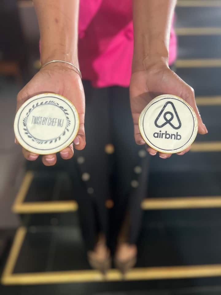 Añade un toque único a tu estancia con unos cupcakes personalizados con los icónicos logotipos de Twist by Chef MJ y Airbnb. Estas deliciosas golosinas son divertidas y sabrosas, perfectas para crear momentos memorables. ¿Tienes un evento especial y quieres personalizar tu propio producto? Pregunta a la chef Mitzi por nuestros deliciosos cupcakes para cualquier ocasión.