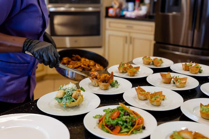 Disfruta de una experiencia gastronómica íntima con una comida de 4 platos dirigida por la chef Shanna en la comodidad de tu propio alojamiento en Airbnb. Esta experiencia gastronómica incluye una ensalada o sopa, un aperitivo, un plato principal con una opción de proteína, almidón y verduras y un delicioso postre para cerrar la velada. El menú es totalmente personalizable, con un recargo por las selecciones prémium. Coste adicional: 20 % de propina para todas las reservas