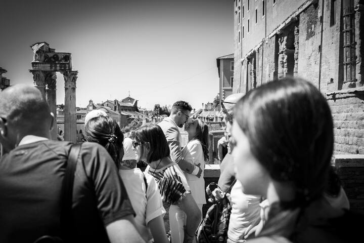Una sesión de retrato de pareja cinematográfica de una hora en el centro de Roma, centrada en rincones ocultos y lugares inusuales en lugar de lugares concurridos. Nos movemos a través de callejones tranquilos, calles de piedra cálidas y vistas secretas, creando imágenes naturales e íntimas a través de la luz, el movimiento y la conexión. Mi enfoque artístico combina la narración, la composición y la atmósfera para capturar momentos auténticos, ideal para un compromiso o una propuesta de matrimonio inolvidable