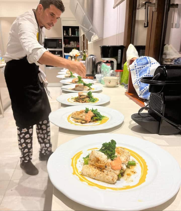Ofrezco un menú completo de estilo mediterráneo con toques asiáticos y productos locales.